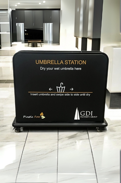 The custom branding panels allow you to turn your umbrella dryer into a subtle marketing tool. Showcase your company logo, a safety message, or a welcoming greeting at the entrance to make a positive first impression. High-visibility branding at the front door ensures your message reaches every visitor, enhancing both professionalism and brand recognition.